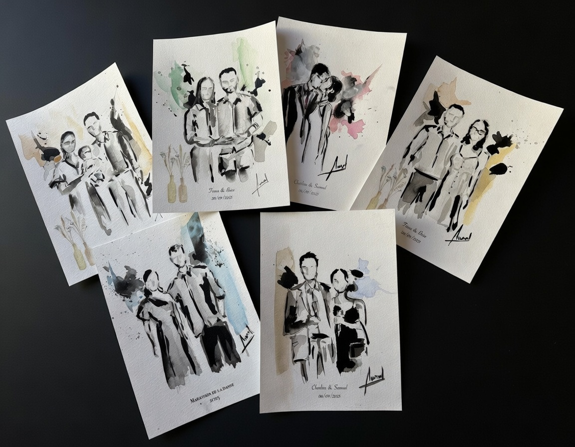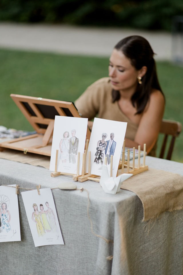 Je réalise des croquis en live de vos invité(e)s pour un mariage ou tout autre événement.